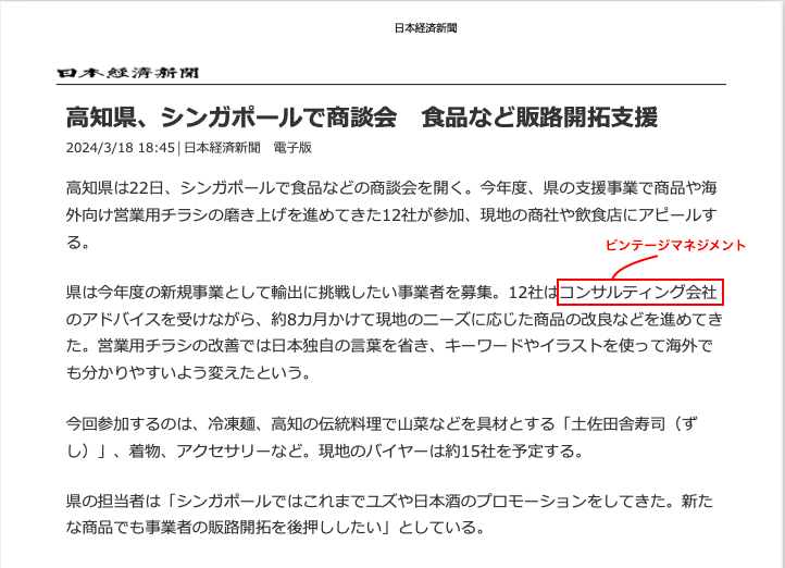 安田のこの思いに賛同してくださった高知県様が昨年2023年度に主催された新事業では、弊社がコンサルタントとして伴走し、8ヶ月をかけてシンガポール及び海外で販路拡大を可能にするチラシと商品の磨き上げを行いました。